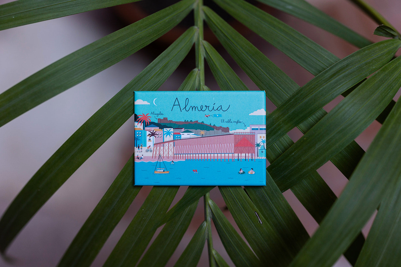 Imán rectangular con ilustración del Cable de Almería. Acabado mate