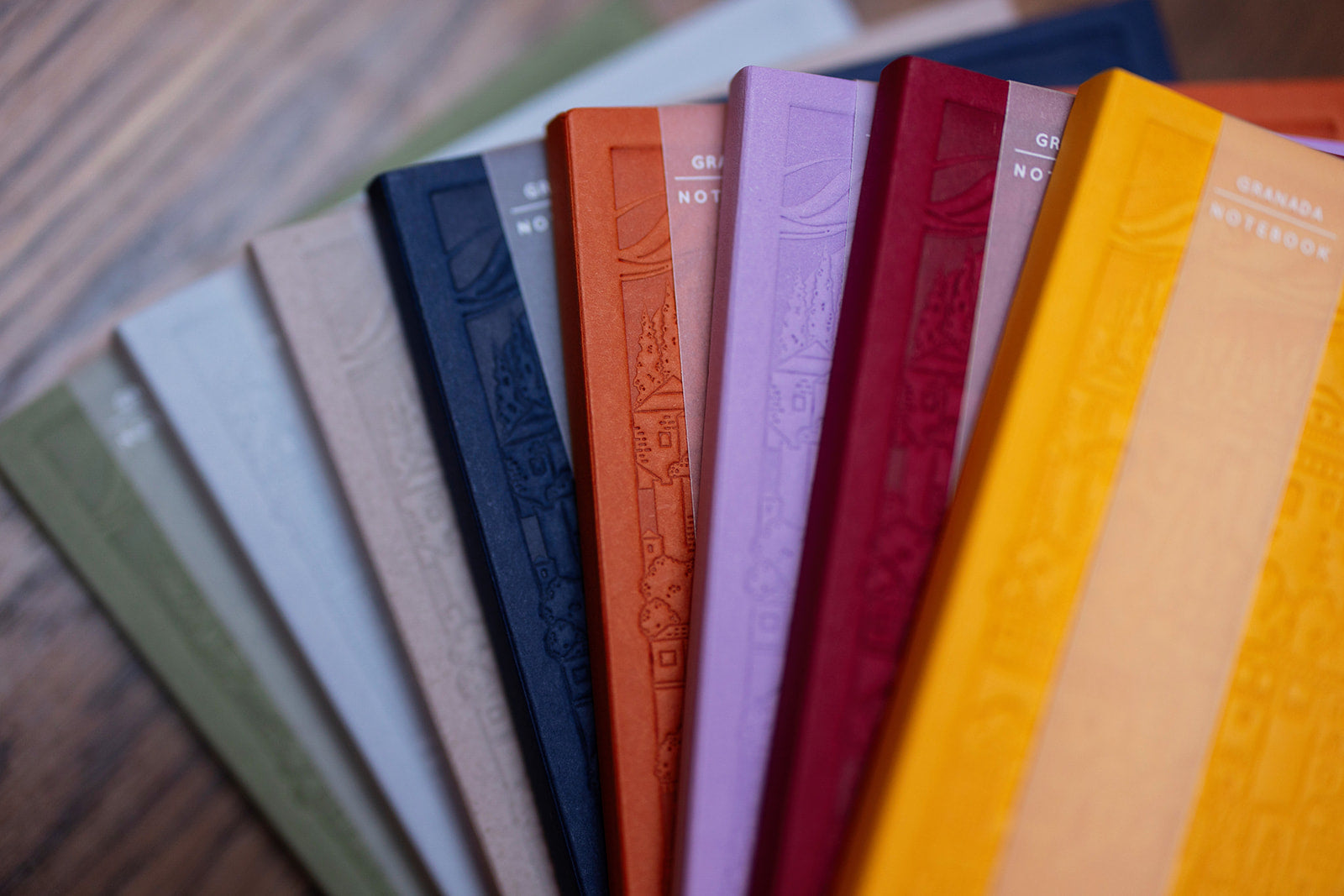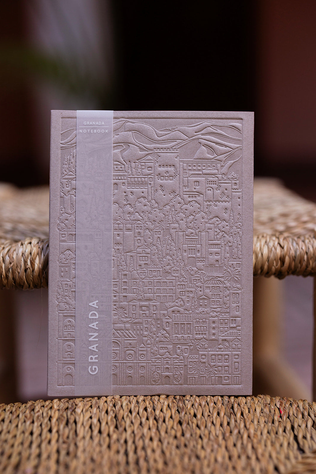con ilustración de los elementos más emblemáticos de la ciudad de Granada, como la Alhambra, la Fundación Rodríguez Acosta o la Catedral.